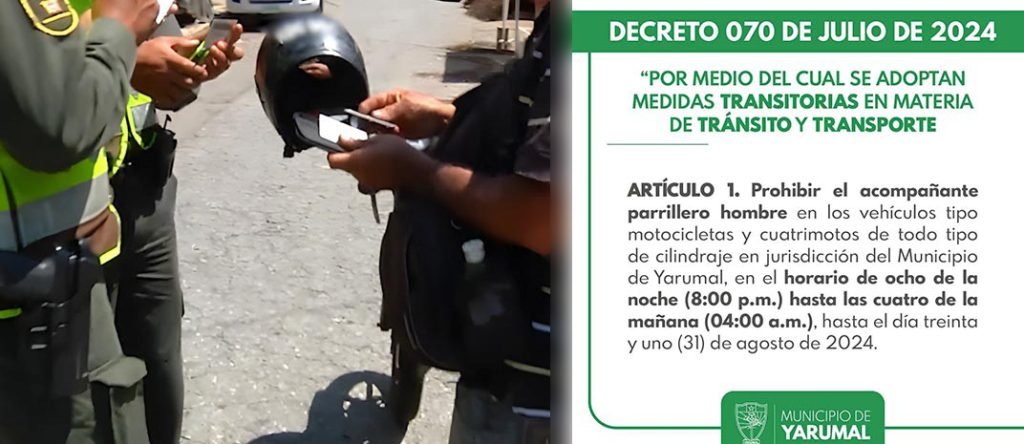 Una de estas decisiones es prohibir la circulación de parrillero hombre en horas de la noche, de 8 p. m. a 4 a. m., esto con el fin de disminuir la tasa de homicidios que está a punto de duplicar las cifras del año anterior.