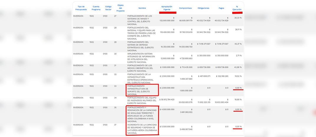 “Es evidente el deterioro por falta de mantenimiento a los equipos militares”. Escribió la representante en su cuenta de X y agregó: “Encontramos 0% de ejecución en presupuesto de funcionamiento, en programas de inversión y en recursos para el mantenimiento de estas aeronaves”.
