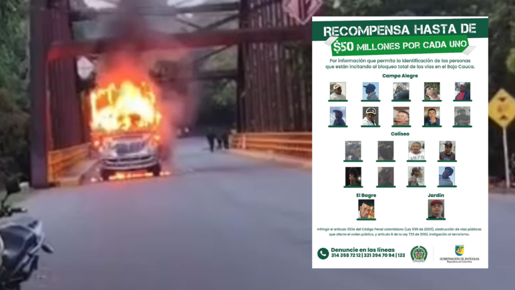 Frente a este panorama, la Gobernación de Antioquia anunció una recompensa de hasta 50 millones de pesos para quienes suministren información que permita ubicar y judicializar a los responsables de los desmanes. De acuerdo con las autoridades, la mayoría de los señalados estarían concentrados en Caucasia.