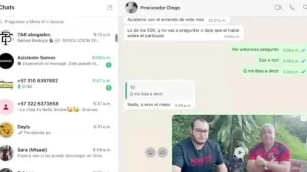 En el Juzgado Séptimo Penal Municipal de Medellín, el proceso contra el excomandante del Cuerpo de Bomberos de Itagüí, Misael Cadavid, por supuestas irregularidades en contratos con el Área Metropolitana del Valle de Aburrá, sufrió un percance insospechado. Durante la diligencia, el abogado defensor Santiago Tobón, en un intento por desmontar las evidencias presentadas por la Fiscalía, expuso sin querer en pantalla un chat privado que sorprendió a todos. En él, un contacto identificado como “Procurador Diego” solicitaba ayuda económica para un arriendo y, lo más preocupante, aconsejaba evitar preguntas sobre contratos valorados en cerca de 500 millones de pesos durante la declaración de un testigo clave.