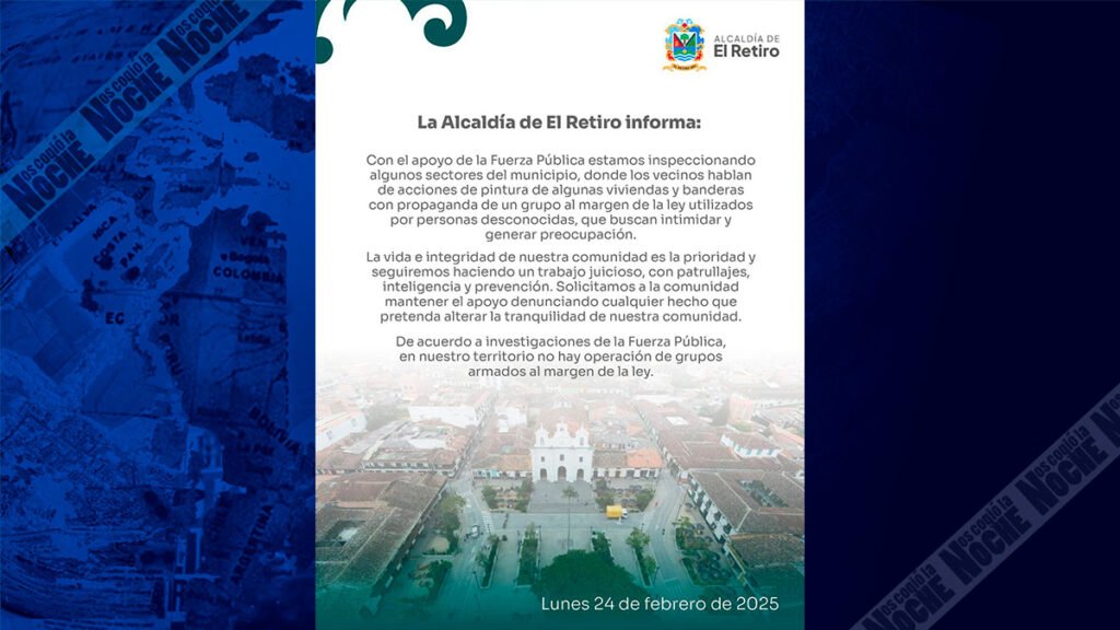 La alcaldía de El Retiro emitió un comunicado de la situación donde rechaza los hechos que han sido denunciados por los guarceños. Fachadas de viviendas y zonas pública aparecieron con el emblema del grupo terrorista.