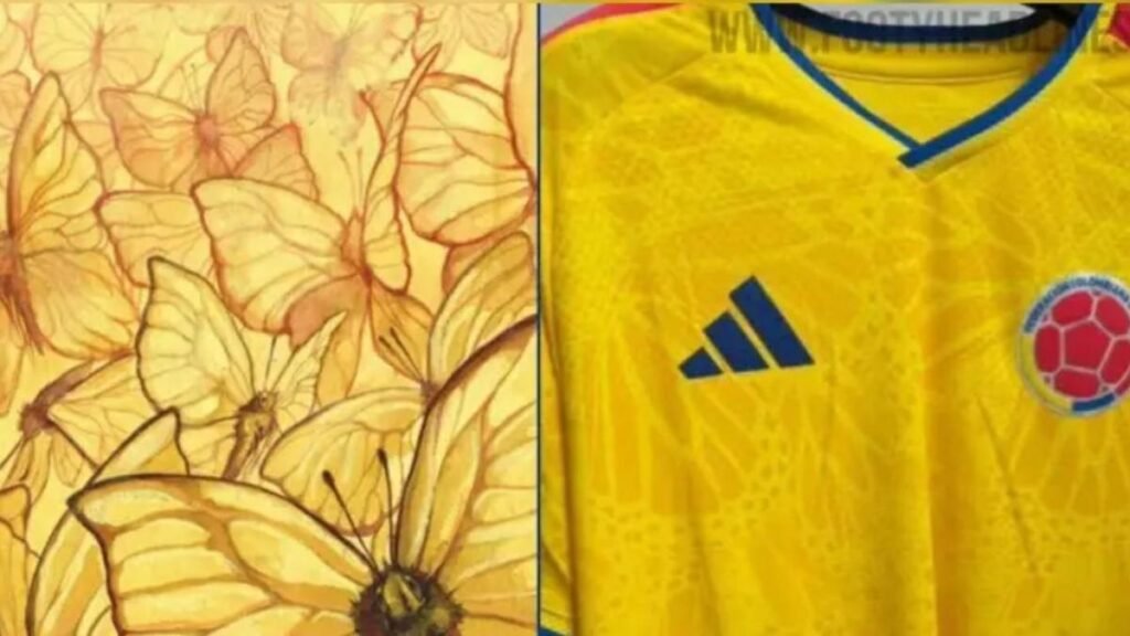 La camiseta titular se presenta en un amarillo más claro y vibrante que en sus versiones anteriores, señalando un guiño a la historia futbolística del país, pero incluyendo tres franjas rojas decorativas sobre los hombros, un sello global del fabricante Adidas. Los detalles en azul en el logo, cuello y mangas remiten a la bandera colombiana, reforzando la identidad nacional. Sin embargo, el simbolismo más resonante está en un patrón de mariposas amarillas que cubre el uniforme, evocando directamente a «Cien años de soledad», la magnum opus de Gabriel García Márquez, Nobel colombiano cuya obra encarna esperanza y transformación en la cultura nacional.