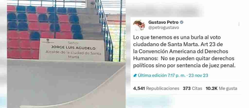 El identificador apareció en un contexto delicado, especialmente considerando las declaraciones previas del presidente Petro, quien en noviembre de 2023 mencionó que en Santa Marta se estaba «burlando el voto ciudadano». Estas afirmaciones se refirieron al hecho de que Jorge Agudelo obtuvo una mayor cantidad de votos que Carlos Pinedo durante las elecciones, aunque los votos de Agudelo fueron anulados debido a su inscripción ilegal en las elecciones.