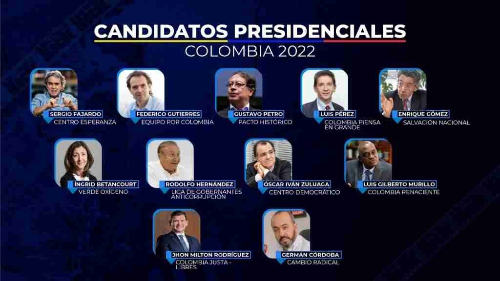 Tras definirse los ganadores de las colisiones de Equipo por Colombia; Federico Gutiérrez, Coalición por la Esperanza; Sergio Fajardo y Pacto Histórico; Gustavo Petro, quedaron decantados los 11 nombres que integran la lista oficial de presidenciables para las elecciones del domingo 29 de mayo.
