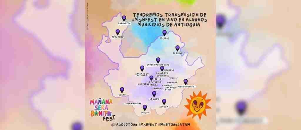 El próximo sábado 2 de diciembre, Karol G llenará de felicidad a miles de residentes de diversas subregiones del departamento que no podrán asistir al Mañana Será Bonito Fest. Esto será posible con pantallas gigantes en los parques principales de 23 municipios.