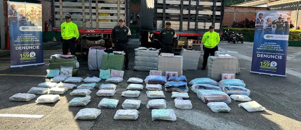 «Gracias a los controles realizados se logró la aprehensión de 71.053 unidades de confecciones que eran transportadas en dos vehículos tipo camión, estas mercancías están avaluadas comercialmente en $2.134.601.735 de pesos»: Policía Metropolitana del Valle de Aburrá.