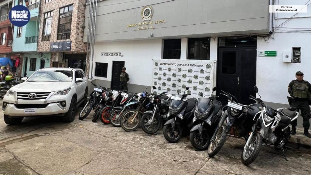 En las últimas horas, la Policía Nacional recuperó 10 motocicletas y una camioneta que habían sido robadas en varios municipios del nordeste antioqueño, gracias a un operativo que empleó protocolos técnicos especializados para identificar los vehículos.