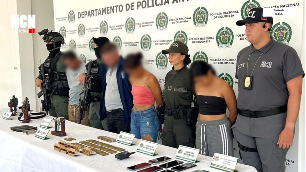 Solo en esta intervención fueron detenidos, además del alias “Guajiro”, Rodrigo de Jesús Muñoz Heredia, alias “El Mono”, en su rol de escolta, y Hasbleidy Posada González alias “Nicol” y Valentina Posada González alias “Carla”, señaladas de recolectar dinero producto de extorsiones en municipios como Andes, Hispania, Jericó, Betania y Jardín. En el operativo fueron incautados dos fusiles calibre 5.56 mm, una pistola 9 mm, cuatro proveedores, 368 cartuchos de munición variada, cinco celulares, una libreta y un radio de comunicación.