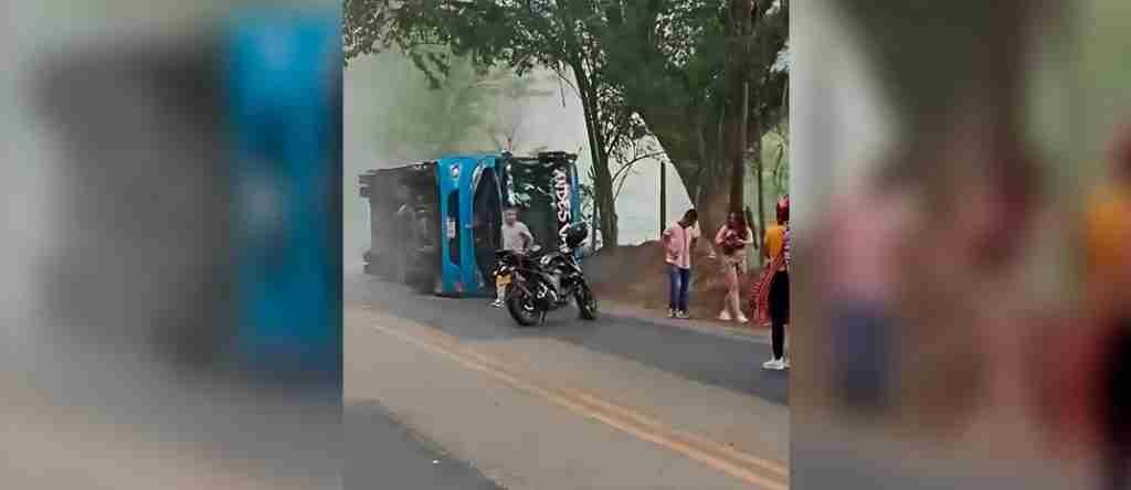 Un bus de servicio intermunicipal que viajaba por la vía que comunica con el municipio de Andes sufrió volcamiento, luego de colisionar con un camión que transportaba pipetas de gas.