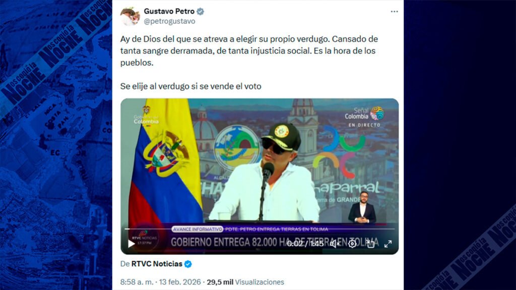 El presidente Gustavo Petro reaccionó en su cuenta de X luego de que el Consejo de Estado suspendiera provisionalmente el decreto que fijó el salario mínimo para 2026. Aunque no mencionó directamente la decisión judicial, publicó un mensaje con tono político en el que advirtió: “Ay de Dios del que se atreva a elegir su propio verdugo… Se elige al verdugo si se vende el voto”.