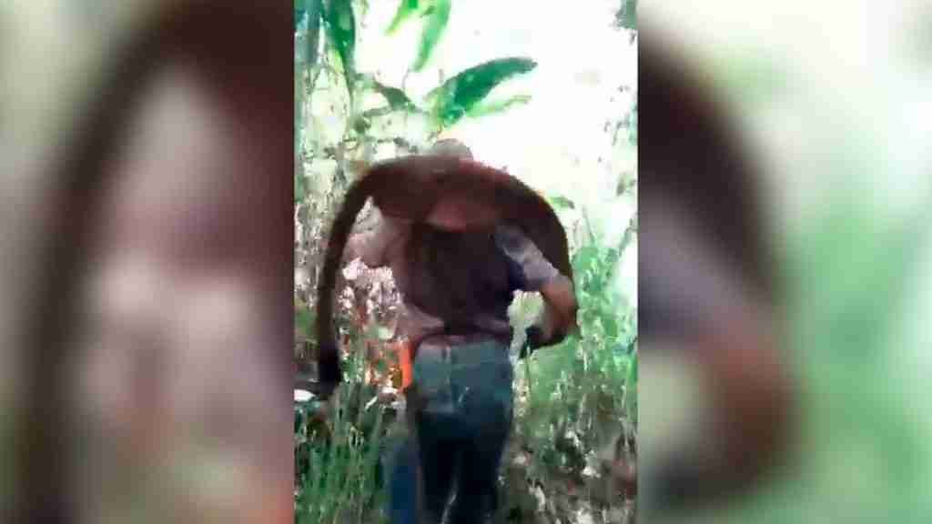 “Creyó que iba a seguir comiendo gallinas”, dice uno de los hombres en el video.