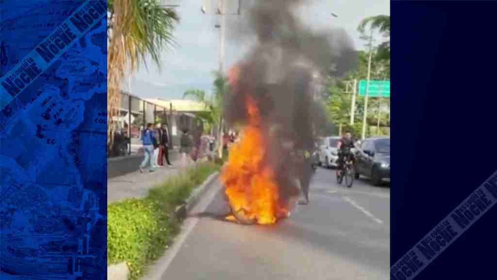 Los bomberos tuvieron que intervenir para apagar el fuego de la moto y los agentes de tránsito descubrieron que esta no pertenecía al hombre que la venía conduciendo. Este, además, se dio a la fuga del lugar, por lo que al comparendo que se le hizo por transitar en sitios o en horas prohibidas se le aumentaría la multa por esta anotación.