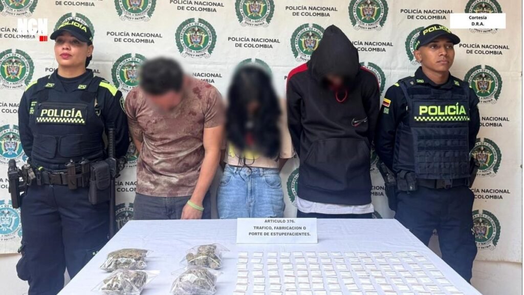 La Policía Nacional capturó el 12 de febrero de 2026 a tres personas en el municipio de Donmatías, Antioquia, durante un operativo en el sector Sagrado Corazón donde incautaron 104 dosis de droga. Los capturados y los elementos decomisados quedaron a disposición de la Fiscalía por tráfico de estupefacientes.