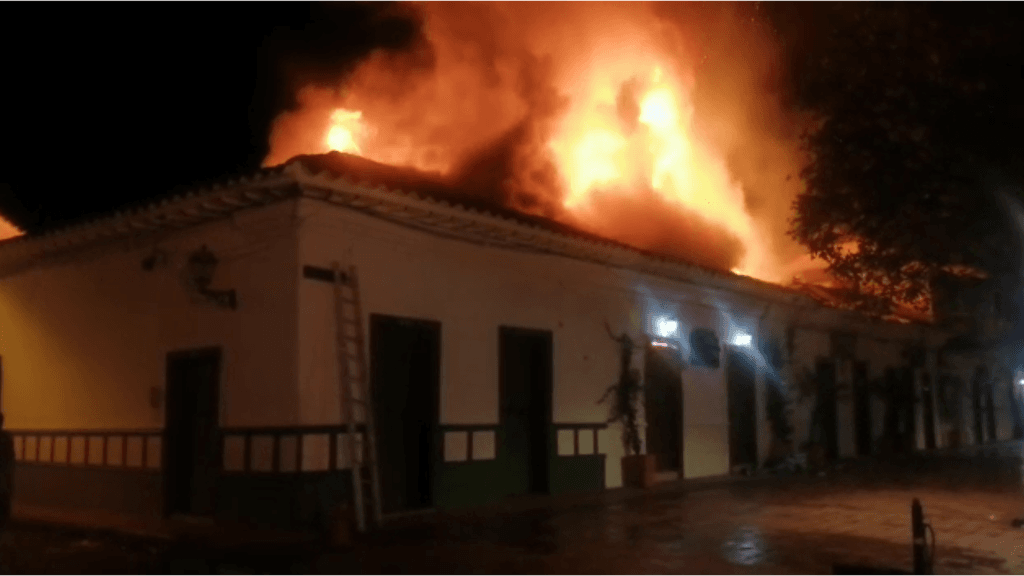En la madrugada del miércoles, se presentó un incendio de grandes proporciones en el Centro Histórico del municipio de Santa Fe de Antioquia. De acuerdo a la información del Consejo Municipal de Gestión del Riesgo de Desastres, las llamas consumieron totalmente dos locales comerciales y de forma parcial tres más.