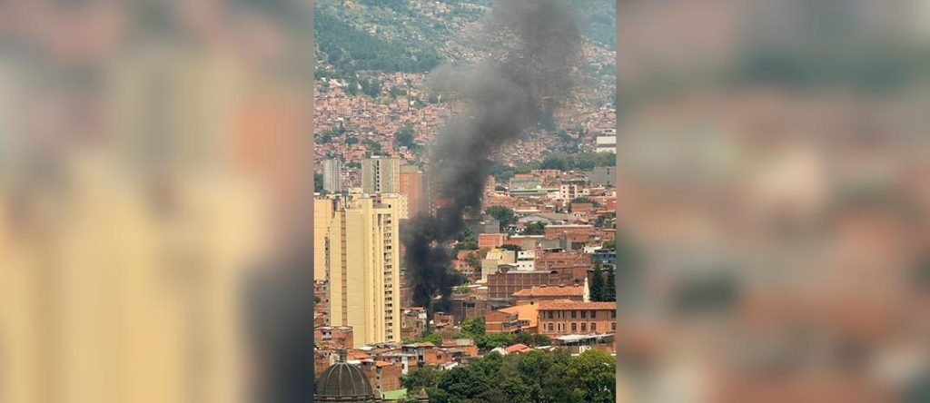 Un fuerte incendio estructural genera emergencia en el centro de Medellín, en el sector del Palo con el Huevo, donde el tercer piso de una vivienda está en llamas.