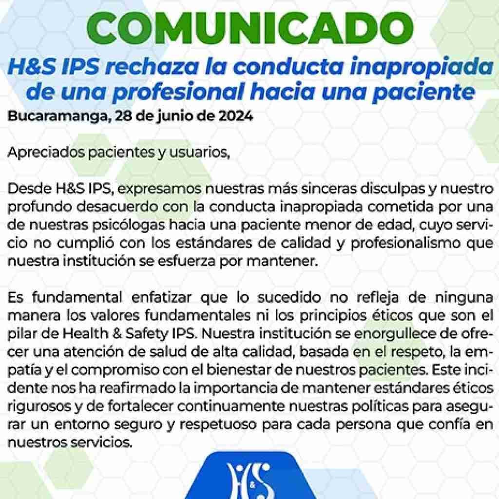 La Secretaría de Salud de Santander ha iniciado una investigación para esclarecer los hechos, mientras que la IPS Health & Safety, institución a la que pertenecía la agresora, ha rechazado el acto, anunciando el despido inmediato de la trabajadora y su disposición a colaborar con las autoridades.