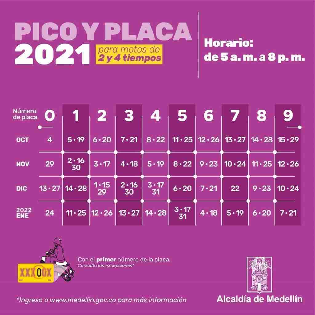 Rotación del Pico y Placa motos, segundo semestre 2021.