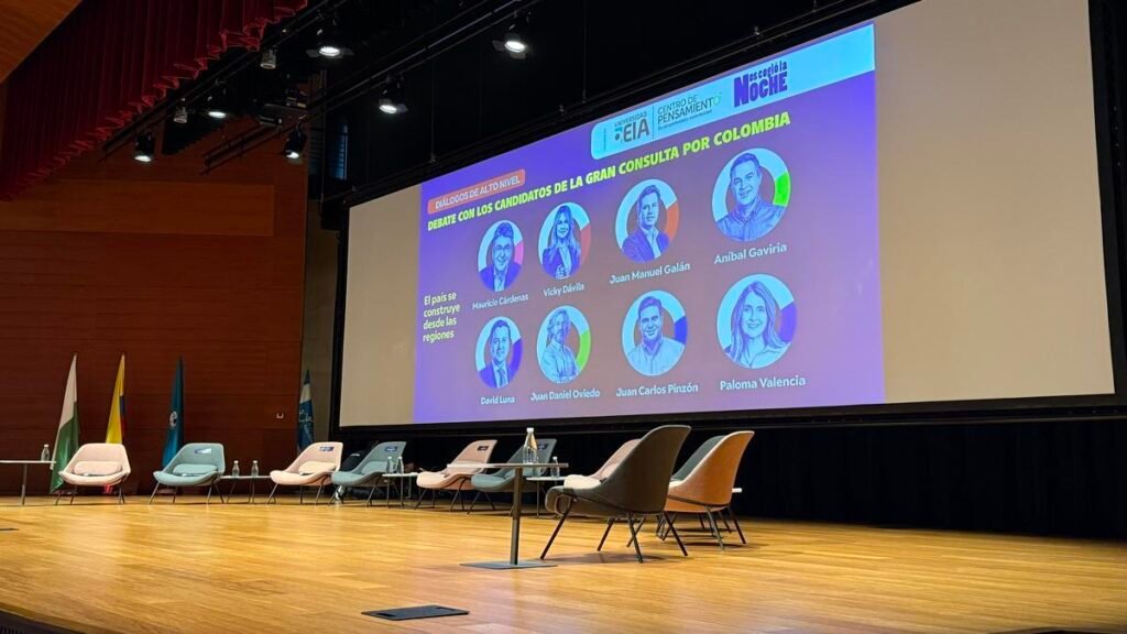 El evento contó con la participación de Paloma Valencia, David Luna, Vicky Dávila, Juan Carlos Pinzón, Juan Daniel Oviedo, Aníbal Gaviria, Mauricio Cárdenas y Juan Manuel Galán. La conversa concentró las posiciones oficiales de precandidatos que buscan representar a la derecha y centroderecha en la contienda presidencial.