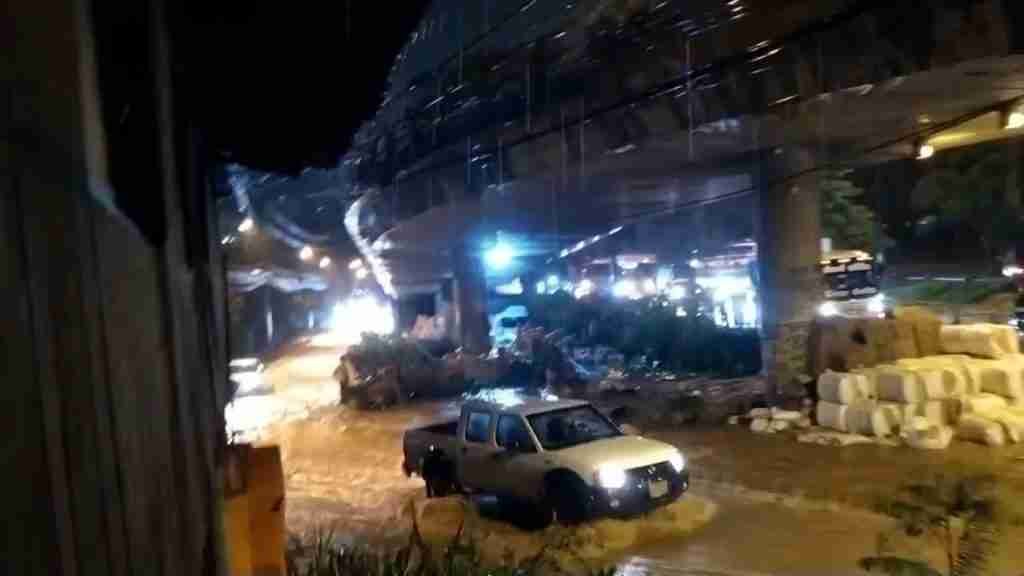 En la Autopista Norte, a la altura del puente que permite el ingreso y salida al municipio de Copacabana se encuentra inundada la vía por el fuerte aguacero que se presentó este miércoles
