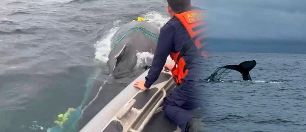 El angustiante rescate ocurrió cuando habitantes de Bahía Solano alertaron a la Armada y a las autoridades ambientales sobre una ballena atrapada en una red de pesca en el parque. Pescadores lograron retirar parte del trasmallo, pero tuvieron que regresar a la costa por falta de combustible y para notificar a las autoridades.