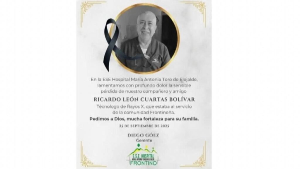 Este jueves 26 de septiembre, en la madrugada, Frontino, un tranquilo municipio del occidente de Antioquia, despertó con una noticia que encendió la consternación y la tristeza: el asesinato de Ricardo León Cuartas Bolívar, un hombre de 68 años, técnico en rayos X del hospital María Antonia Toro Elejalde.