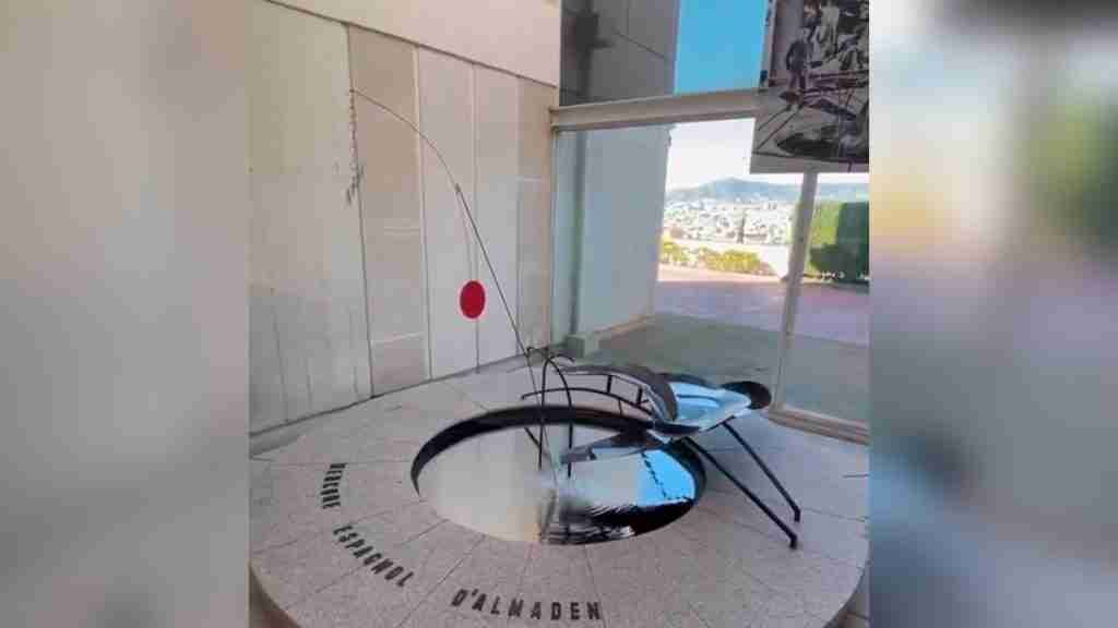 En el video se observa la fuente de Mercurio de Alexander Calder, creada para el Pabellón de la República Española de la Exposición Internacional de París de 1937. Actualmente, se encuentra ubicada dentro de la Fundación Joan Miró en Barcelona. La fuente se mantiene detrás de una cubierta de vidrio para proteger a los visitantes de la sustancia altamente tóxica.