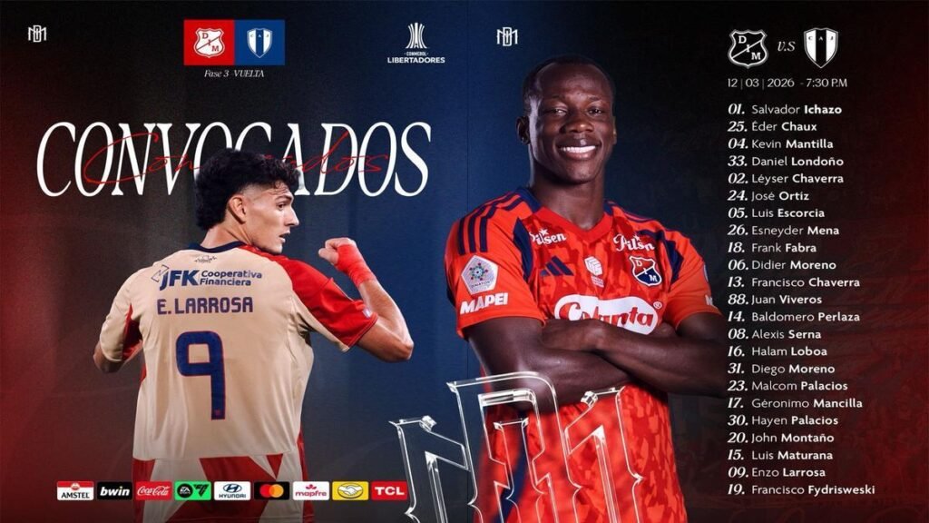 Independiente Medellín se encuentra enfocado en el compromiso de vuelta de la tercera fase previa de la Copa Libertadores 2026, en el que enfrentará a Juventud de Las Piedras este jueves 12 de marzo a las 7:30 de la noche en el estadio Atanasio Girardot. El equipo antioqueño llega tras igualar 1-1 en el partido de ida en Montevideo el pasado 5 de marzo, por lo que necesita un triunfo o un empate con goles en el choque definitorio para avanzar de ronda.