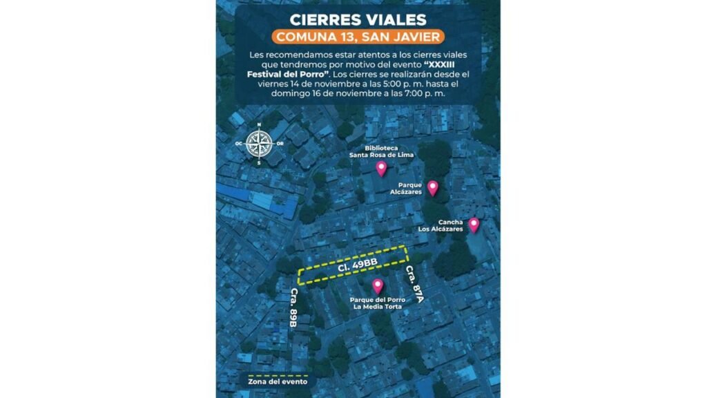 Este fin de semana, Medellín sentirá el pulso vibrante de su tradición en la Comuna 13, San Javier. Desde la tarde del viernes 14 de noviembre y hasta la madrugada del lunes 17, las calles se transforman en escenarios vivos de cultura y comunidad, pero también en barreras para el tránsito cotidiano.