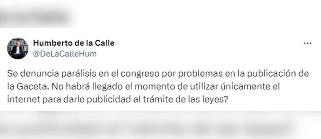 “Se denuncia parálisis en el congreso por problemas en la publicación de la Gaceta. ¿No habrá llegado el momento de utilizar únicamente el internet para darle publicidad al trámite de las leyes?”.