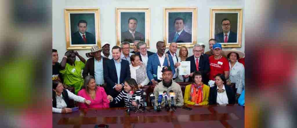 A la radicación del proyecto de Ley, asistieron el presidente de la Cámara de Representantes, Andrés Calle, el ministro de Justicia, Néstor Osuna, la directora del Departamento de Prosperidad Social, Laura Sarabia y miembros de la Bancada de Paz Colombia.