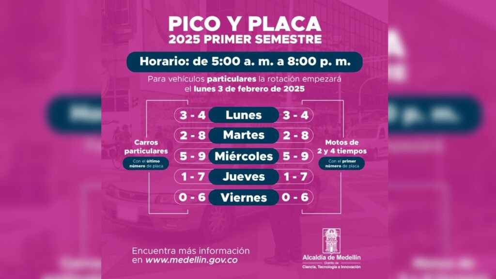 A partir del 03 de febrero, entrará en vigor un nuevo esquema de rotación para el pico y placa que afectará a los 10 municipios del Valle de Aburrá. Esta medida tiene como objetivo reducir la congestión vehicular y mejorar la calidad del aire en la región.
