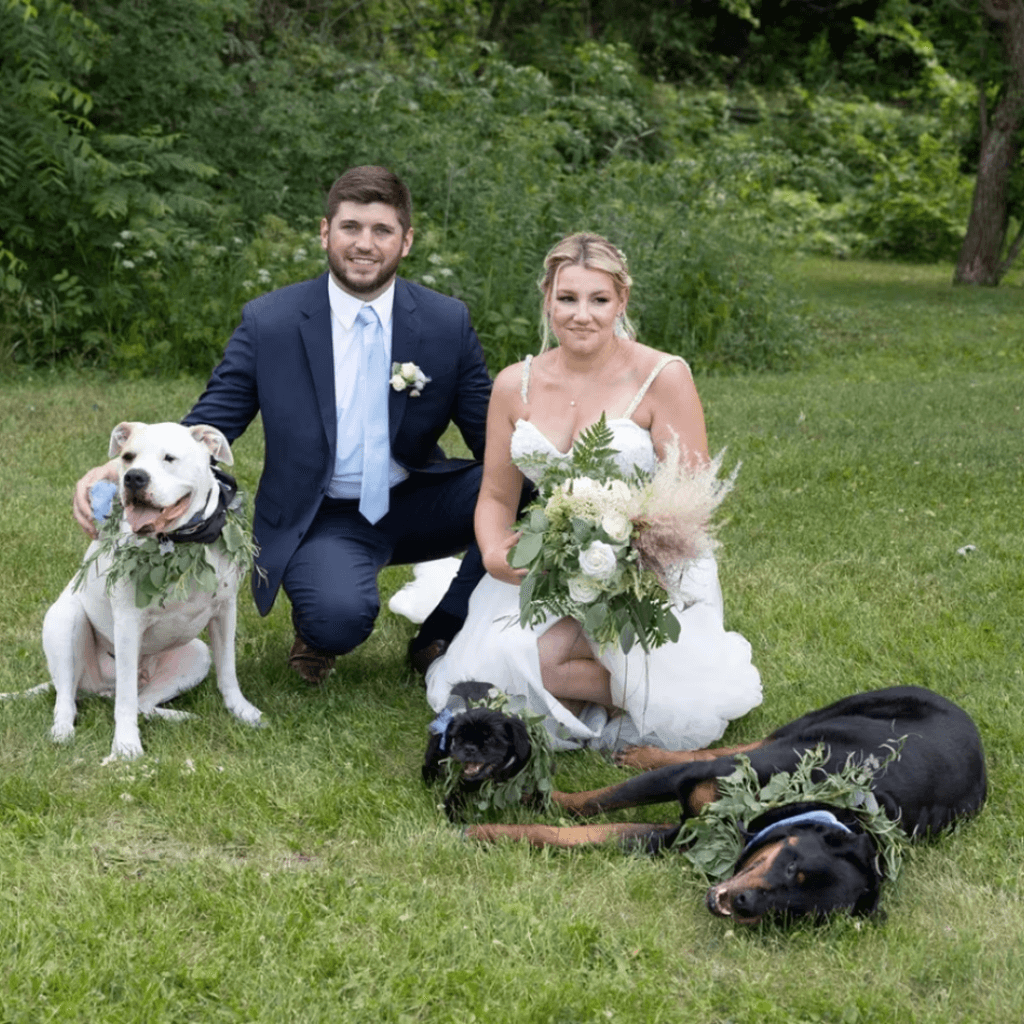 En un entorno adornado con flores y con su perro como compañía, Cat y Jimmy intercambiaron votos en un momento totalmente diferente a lo planeado, pues dentro de su ceremonia, Bear, fue el «padrino» de la boda.