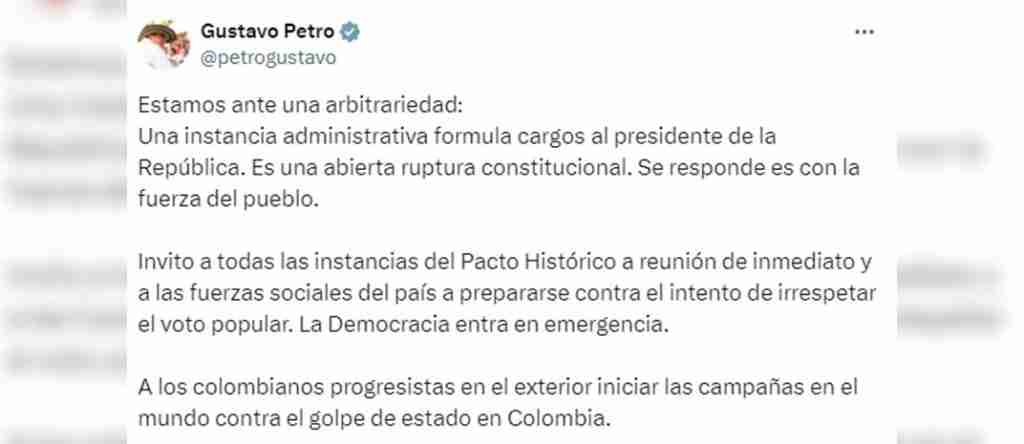 “Invito a todas las instancias del Pacto Histórico a reunión de inmediato”, proclamó el mandatario colombiano.