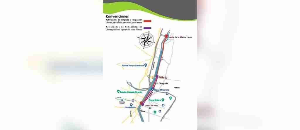 Sentido Sur – Norte de la Avenida Regional, comprendido entre la calle 46 (viaducto Línea B del Metro) y la calle 67 (puente de Barranquilla). El cierre se llevará a cabo de lunes a domingo, en horario de 9:00 p. m. a 4:00 a. m., a partir del 26 de febrero.