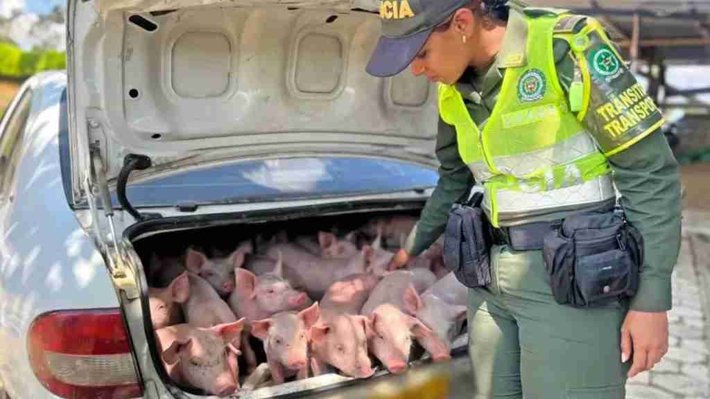 El rescate fue posible gracias a la intervención de la Policía de Antioquia en las carreteras del departamento. Durante un operativo de control, las autoridades interceptaron a un vehículo particular conducido por un hombre de 56 años que transportaba a los porcinos en el maletero, casi al borde del ahogamiento y expuestos a monóxido de carbono.
