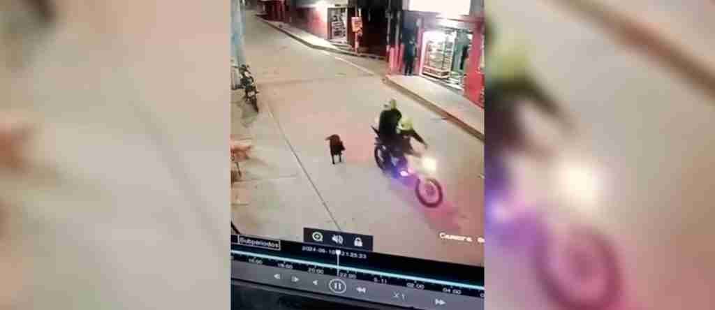 El hecho ocurrió cuando el perrito se atravesó en la de los policías, lo que generó que estos dos uniformados se devolvieran y le propinaran el indignante golpe con la tonfa al indefenso animalito.