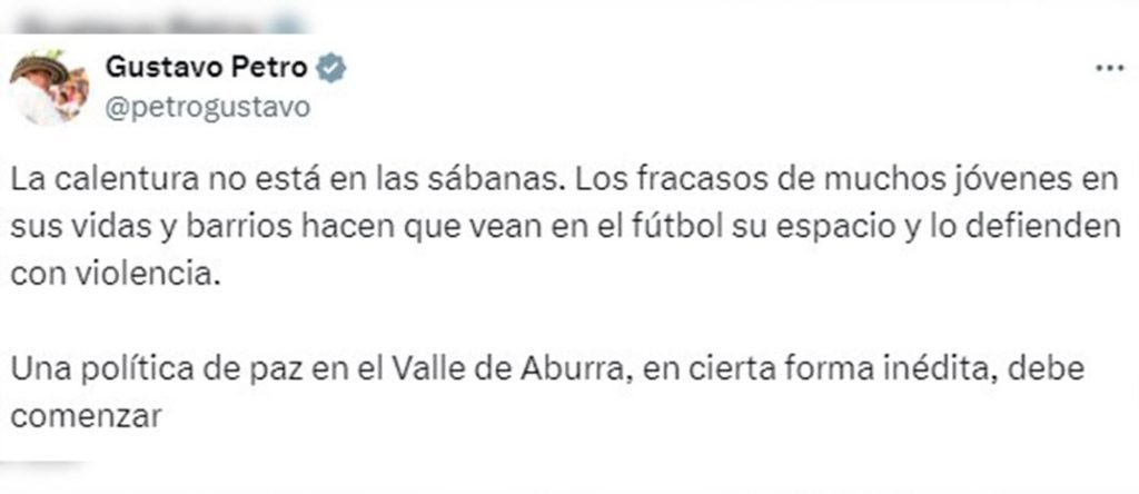 Presidente Gustavo Petro pidió una estrategia de paz ante la violencia en el fútbol