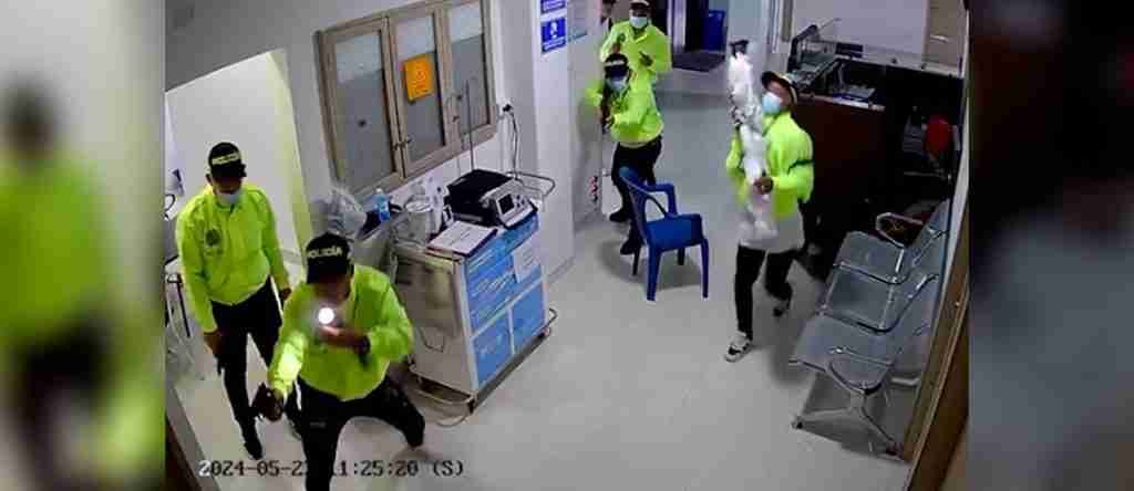 En una escena, al mejor estilo de una película, quedó registrada una balacera perpetrada en una clínica de Barranquilla, donde se ve a un grupo numeroso de hombres vestidos con prendas privativas de la fuerza pública y fuertemente armados, disparando al interior de este centro médico, donde asesinaron a dos personas: un escolta de Luis Alfonso López, hijo de alias ‘La Gata’ y a otro hombre que tenía antecedentes penales.