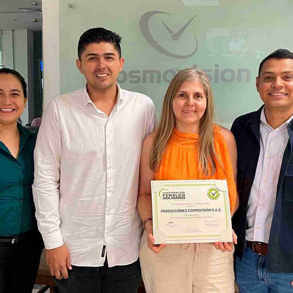 La empresa antioqueña Producciones Cosmovisión S. A. recibió por parte de la Corporación Fenalco Solidario la certificación en Responsabilidad Social Empresarial gracias a las labores continuas que vinculan a sus trabajadores con proyectos clave para mantener buenas prácticas empresariales.