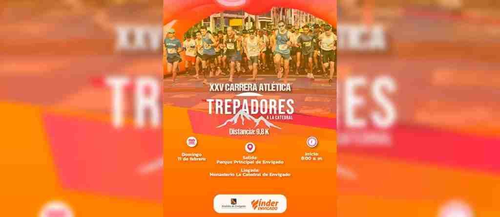 Este domingo 11 de febrero, a partir de las 8:00 a. m., se llevará a cabo la vigésima edición de la Carrera Atlética Trepadores a La Catedral, con un recorrido que partirá desde el parque principal de Envigado hasta el Monasterio La Catedral, ubicado en la vereda El Vallano.