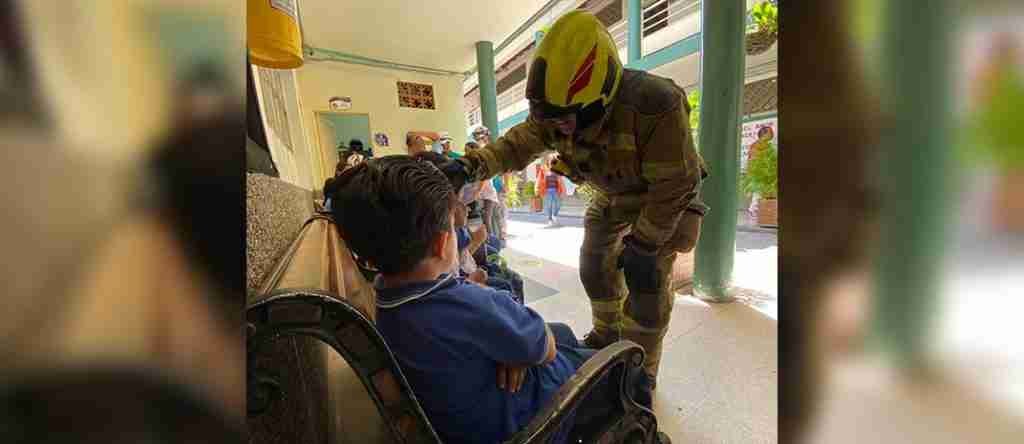 De inmediato, una máquina de desplazamiento rápido con cuatro tripulantes se dirigió al lugar de los hechos. Al llegar, se constató que las abejas habían ingresado al Colegio Samuel Barrientos, en ambas sesiones.