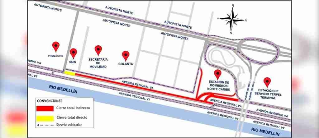 Para minimizar las molestias a los conductores, se establecerán desvíos en la Avenida Regional. Aquellos que se desplacen de norte a sur podrán cambiar de la calzada occidental a la calzada oriental antes de llegar a la calle 75 B (Estación de Bomberos) y retomar la calzada occidental después de pasar la obra, en la calle 72.