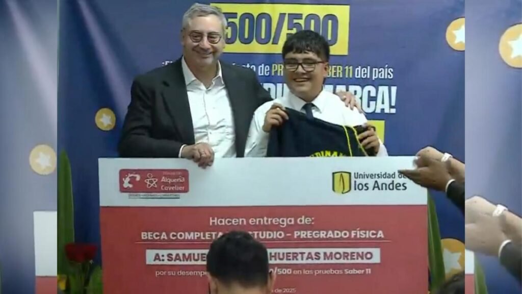 Samuel Huertas, estudiante del Colegio Rural María Medina en el municipio de Fosca, Cundinamarca, alcanzó un logro excepcional al obtener puntaje perfecto en las pruebas Saber 11 del Icfes 2025, posicionándose entre los mejores bachilleres del país. Su sobresaliente desempeño académico le permitió recibir una beca completa en la Universidad de los Andes, donde iniciará estudios en Física, una pasión que cultiva desde niño.
