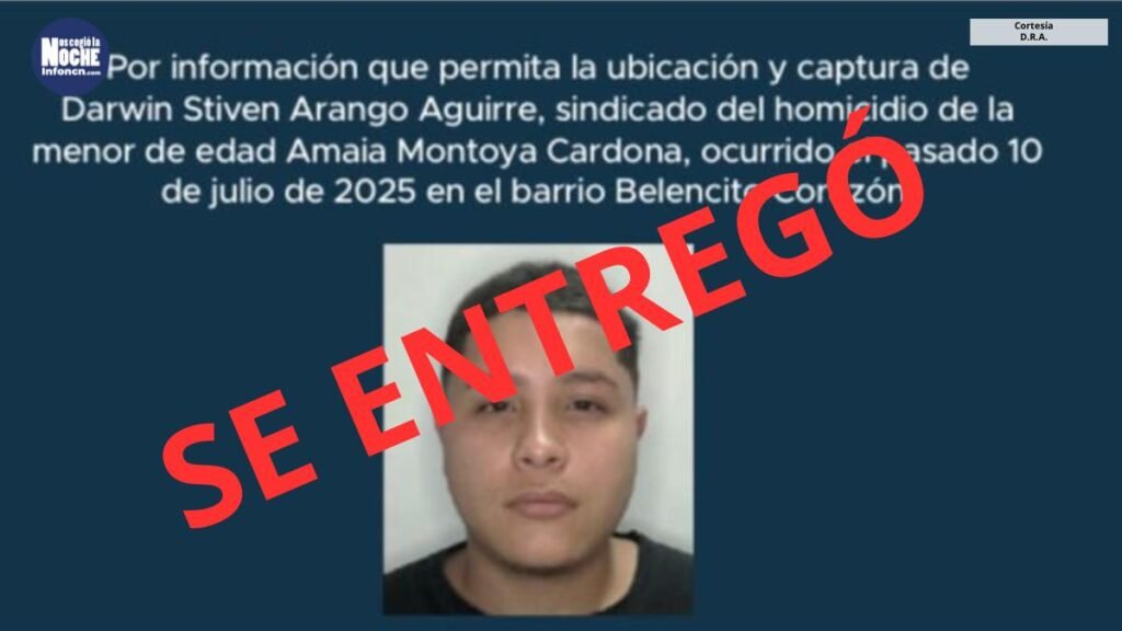 En Medellín, Darwin Stiven Arango Aguirre, padrastro de Amaia Montoya Cardona, niña de 2 años víctima de homicidio y abuso, se entregó voluntariamente a la Fiscalía el 31 de julio de 2025 para responder por los hechos ocurridos entre el 8 y 10 de julio en el barrio Belencito Corazón, Comuna 13.