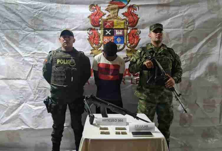 Un soldado profesional identificado como Johnny Palacios Córdoba, de 19 años, fue capturado por robar un fusil del Puesto de Mando Adelantado en Yarumal, Antioquia.