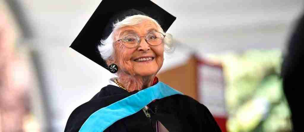 Después de esperar ocho décadas, Virginia “Ginger” Hislop, quien se matriculó en Stanford en 1936 y obtuvo su licenciatura en educación en 1940, a sus 105 años, logró obtener su título de maestría.