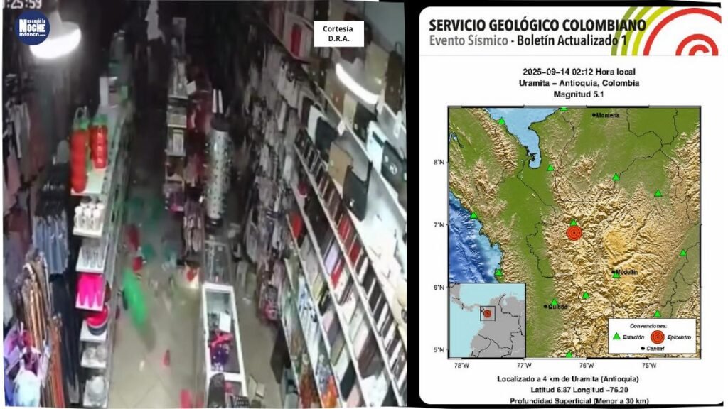 En la madrugada del domingo 14 de septiembre, un sismo de magnitud 5.1 con epicentro en el municipio de Uramita despertó a los habitantes de varios municipios del Valle de Aburrá, incluida la ciudad de Medellín. El temblor fue registrado a las 2:08 a.m. por el Servicio Geológico Colombiano (SGC) y tuvo una profundidad superficial que aumentó su percepción.