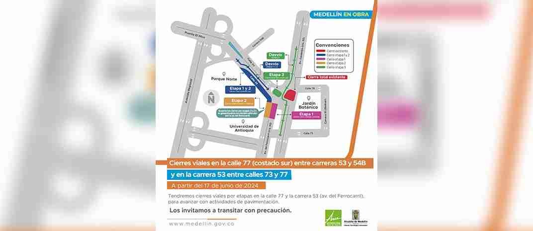 Fase 2: el cierre total continuará en la calle 77 entre las carreras 53 y 54B (lado sur), y en la carrera 53 (avenida Ferrocarril) entre las calles 73 y 77 (lado oeste).