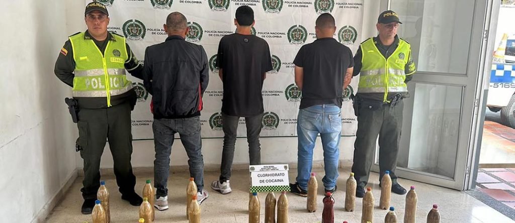 En este procedimiento se logró la captura de 3 personas, las cuales fueron dejadas a disposición de la Fiscalía, junto con la base de coca que estaba envasada en envases de gaseosa de diferentes tamaños.