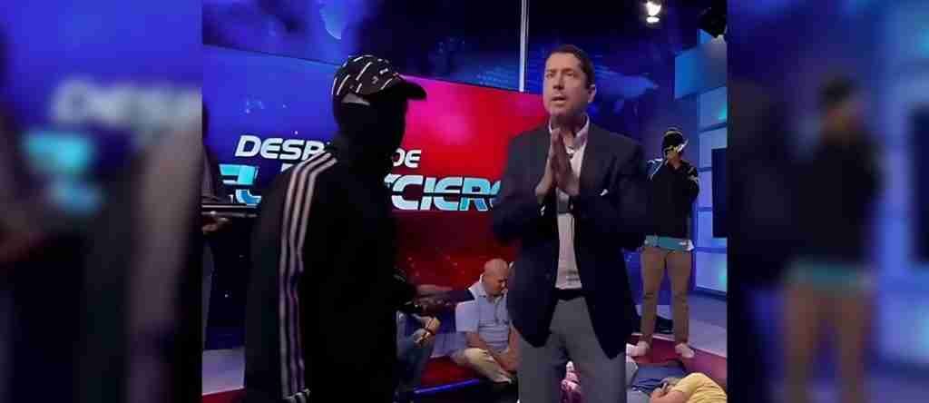 “Que se vaya la policía” se escucha decir a uno de los presentadores del canal a quien, posteriormente, los hombres le ponen lo que al parecer es un explosivo.